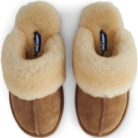 Dj X Lands End Women S Suede And Shearling Scuff Slippers Draper James