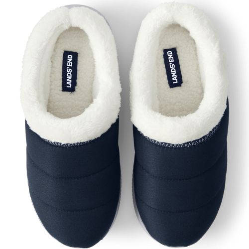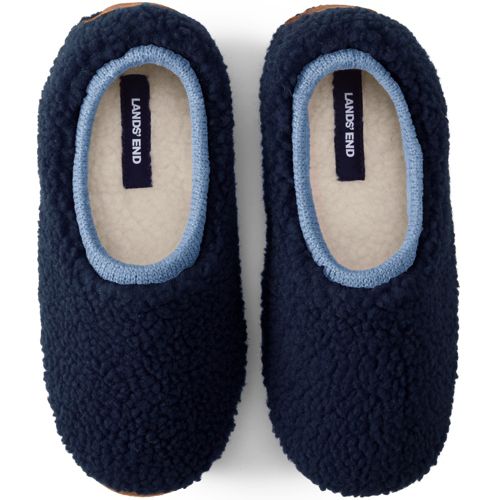 Draper James X Lands End Women S Chambray Fuzzy Shearling Fur Scuff Slippers Lands End